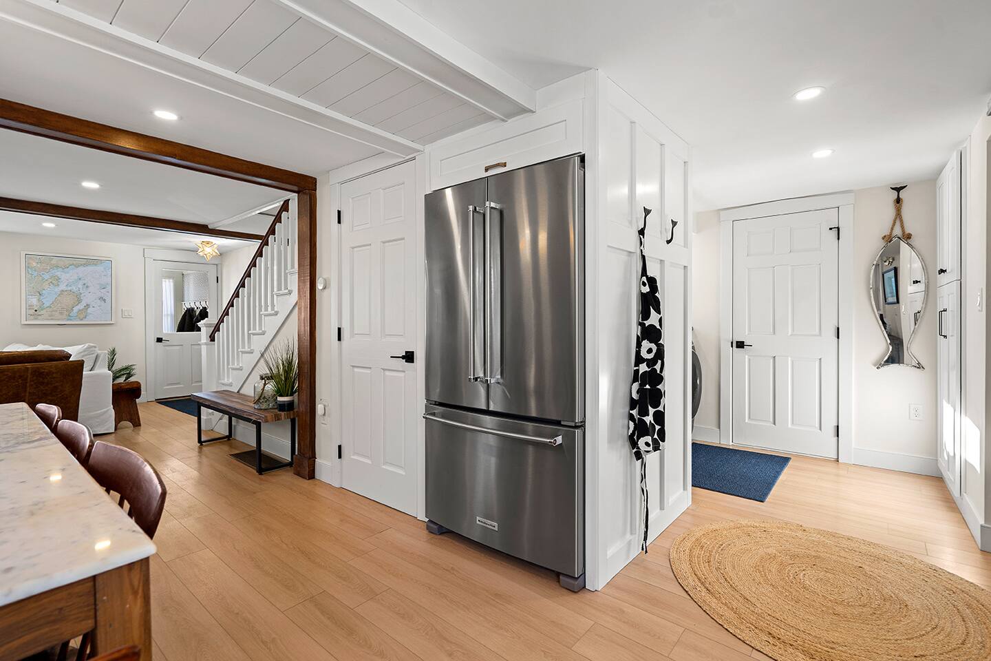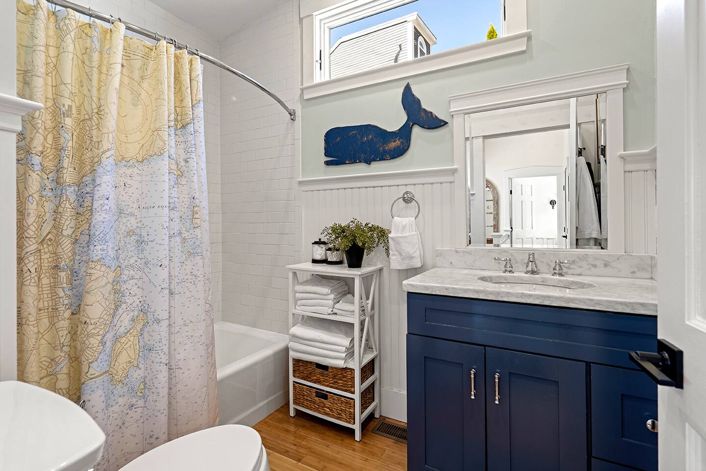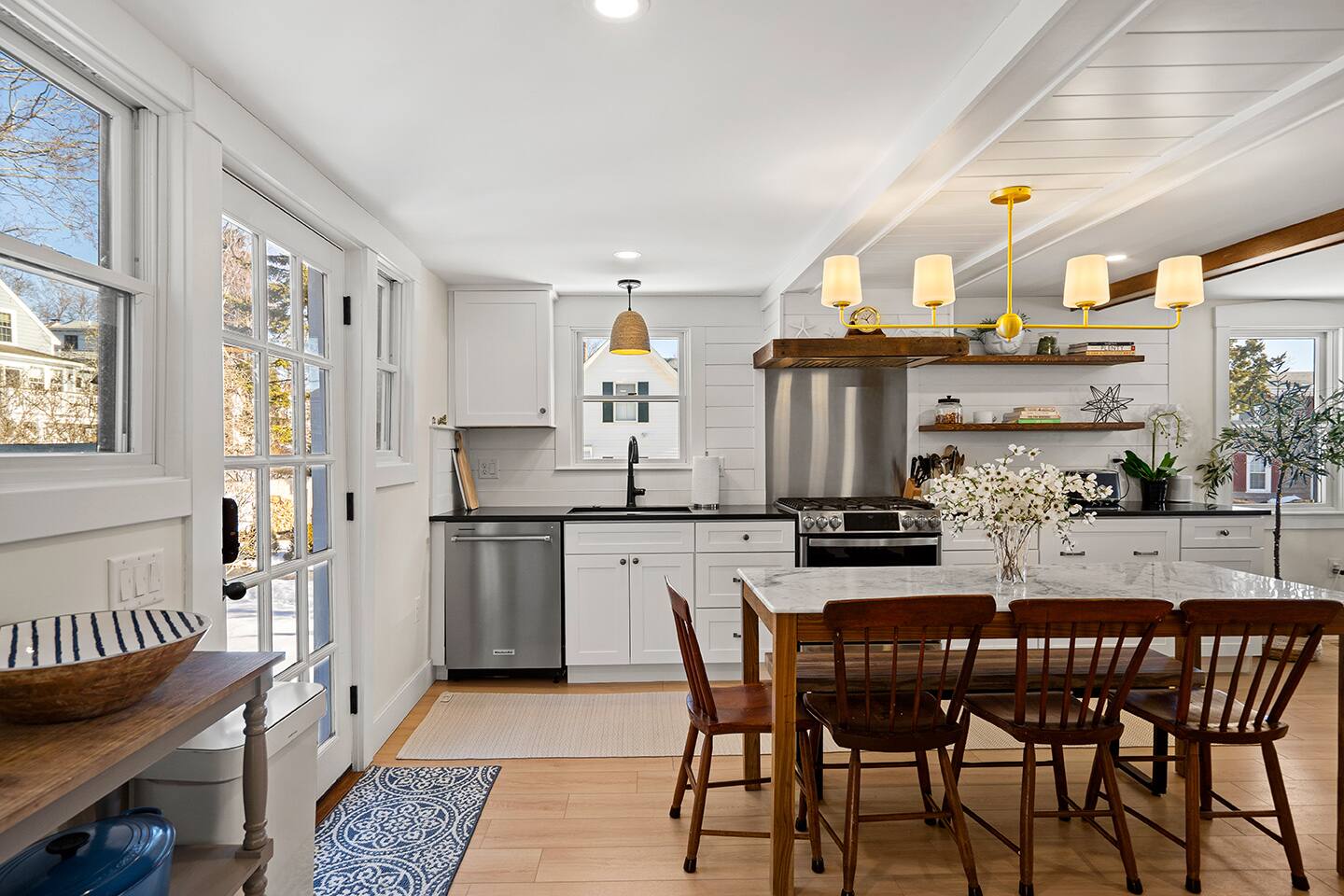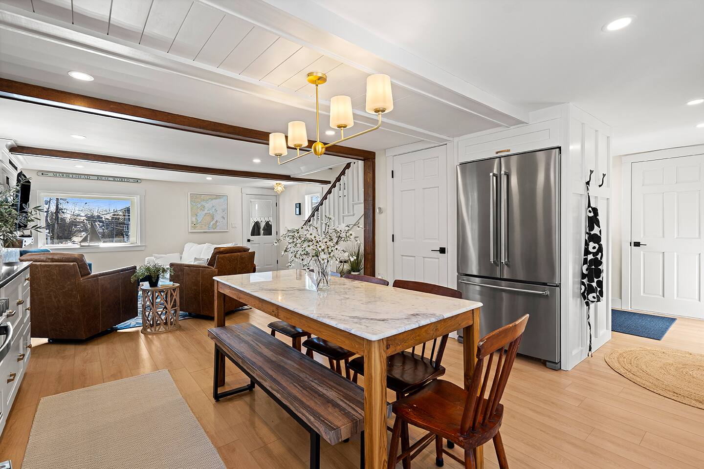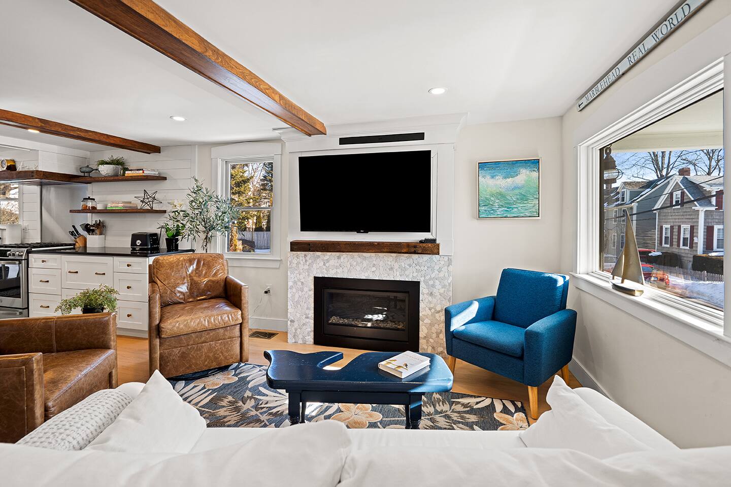 The Oyster Cottage is a fully renovated shiplap cutie with exposed beams that is located right in the center of Marblehead... walkable to several restaurants and local shopping. • Shiplap Styling & Exposed Beams • Gas Fireplace • Stainless Eat-in-Kitchen • Second Floor Bedrooms with Cathedral Ceilings • Open Floor Plan • Private Back Deck • Cozy Front Porch • Skylights • Around the Corner from Several Restaurants and Shopping