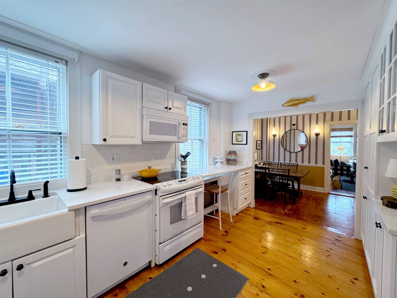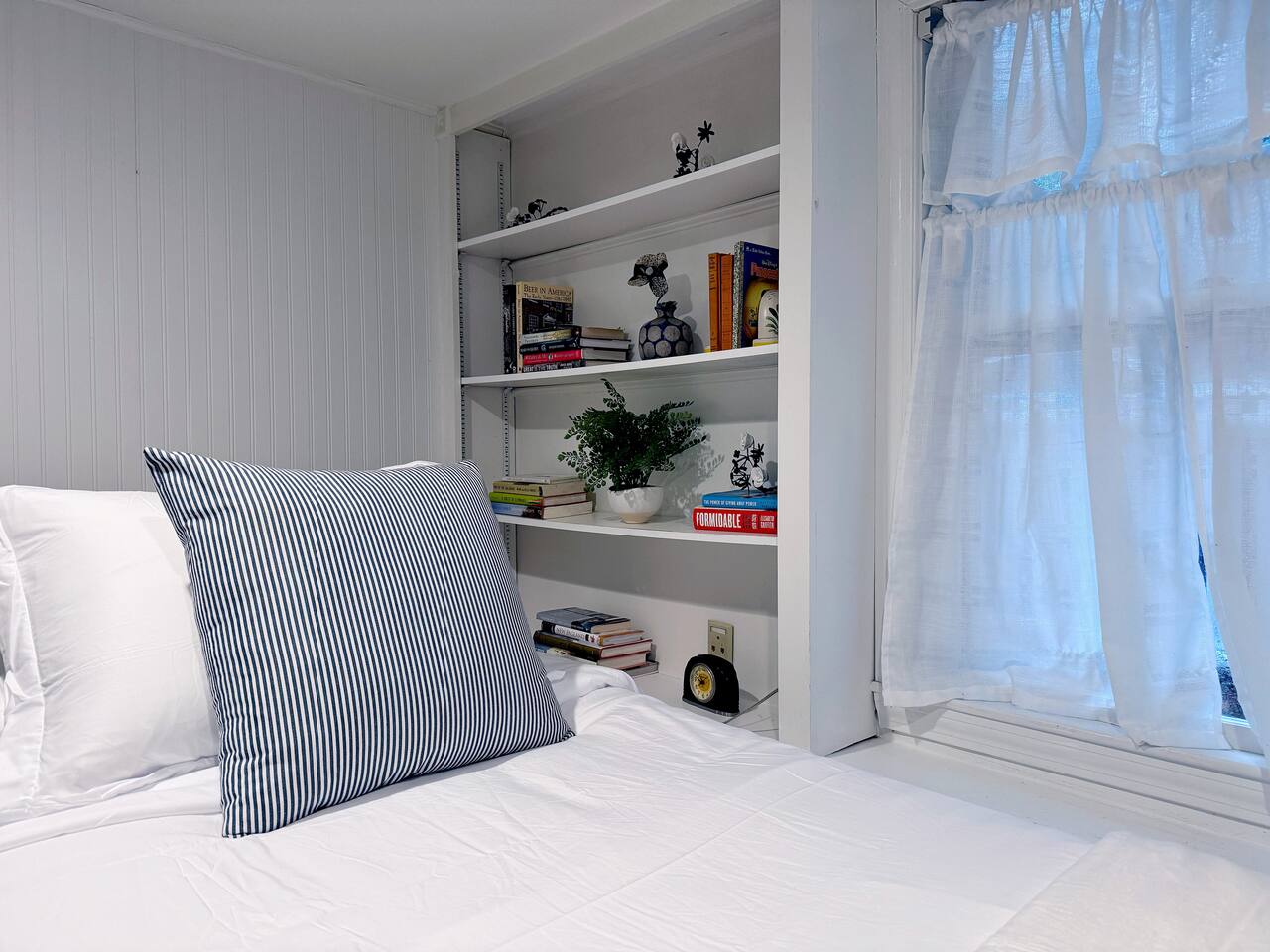 Queen Bedroom - first floor (sleeps 2) - Queen-sized bed - Closet Twin Bedroom - first floor (sleeps 1) - Twin-sized bed - Closet BATHROOMS: • One Full Bath (first floor) KITCHEN: • Microwave • Drip Coffeemaker • Electric Cooktop • Dishwasher • Cutlery • Cookware • Silverware • Wine Glasses • Coffee Mugs • Glassware • Dinnerware • Paper Towels • Dish Soap • Hand Soap • Sponge • Trash Bags • Dishwasher Tabs OUTDOORS: • Outdoor Sitting Area GENERAL: • Bath, Hand and Face Towels • Shampoo and Conditioner • Body Wash • Sheets • Pillows • Duvet Covers • Fleece Blankets