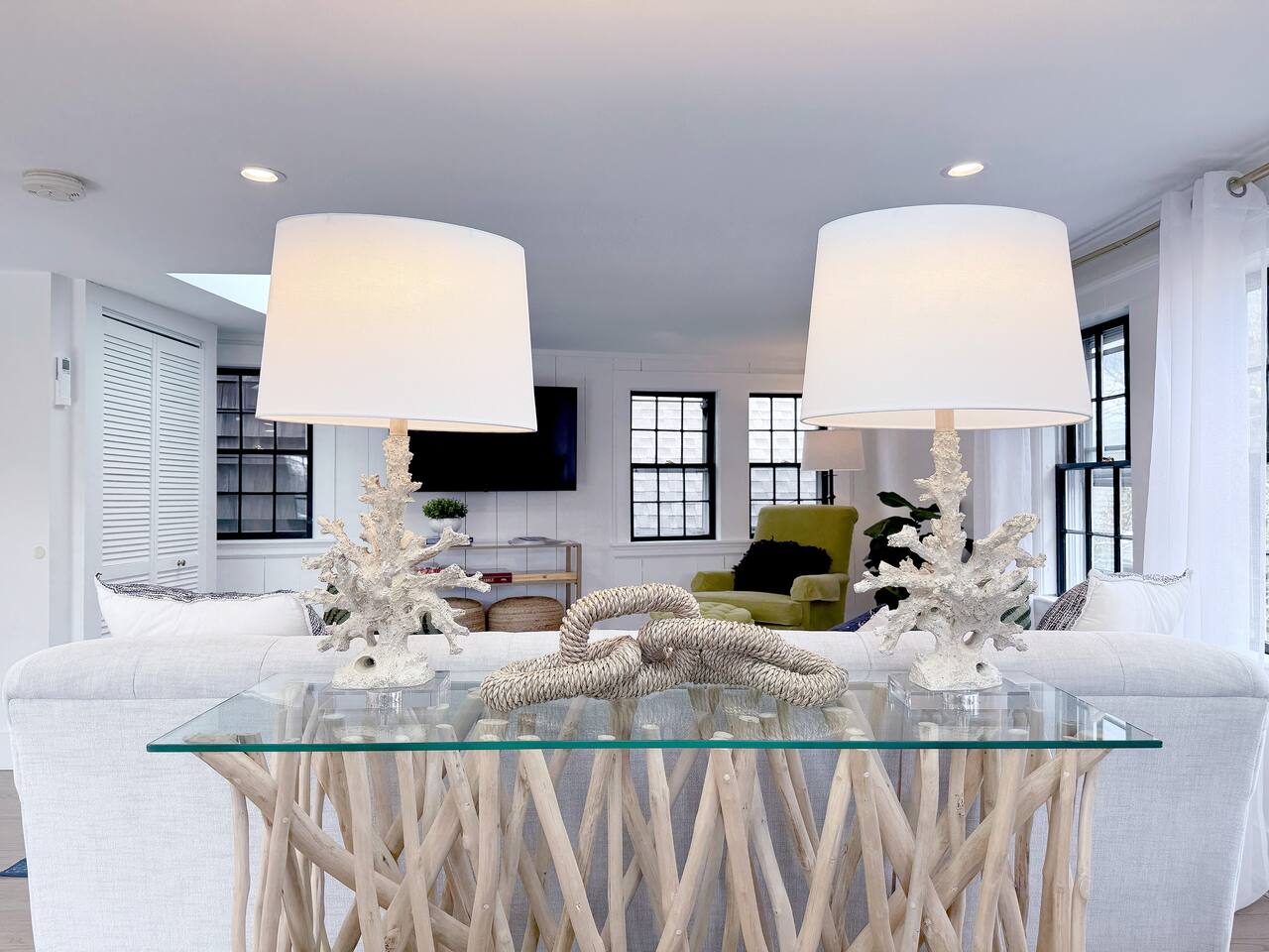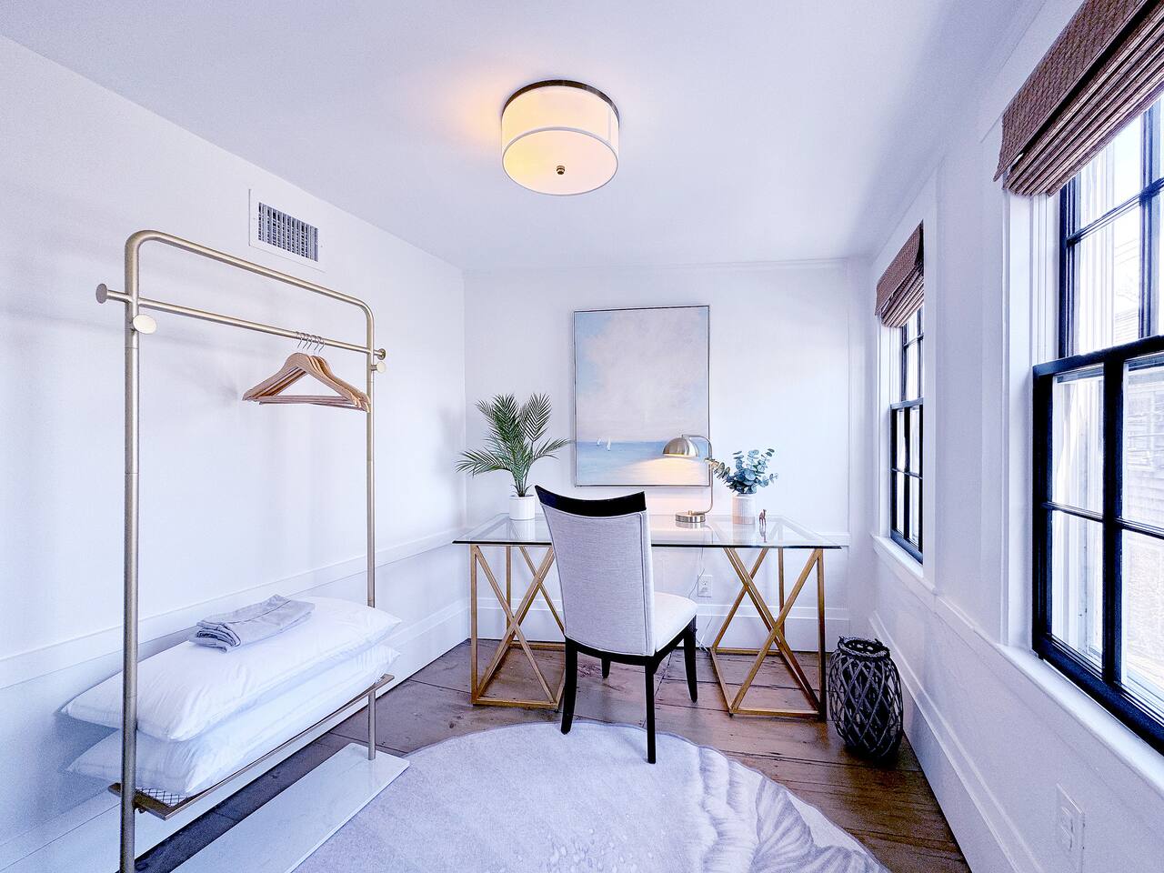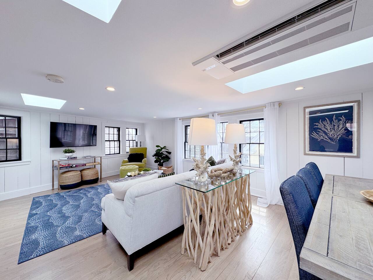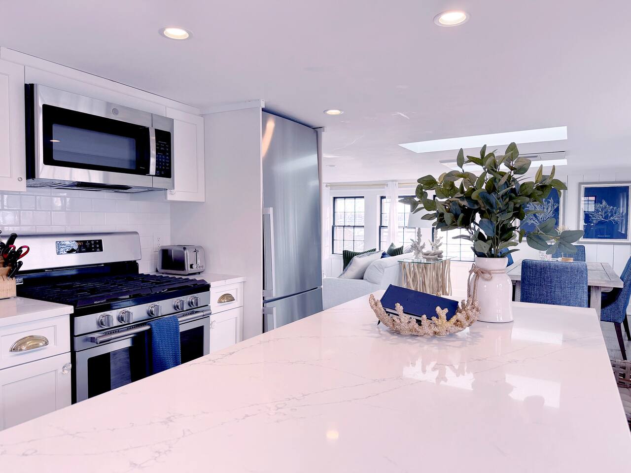 Sleeping Arrangements (Sleeps 4): Primary Bedroom - first floor (sleeps 2) - King-sized bed - Ensuite bath - Large bureau Queen Bedroom - first floor (sleeps 2) - Queen-sized bed - Medium-sized bureau BATHROOMS: • Full Bathroom - first floor • Full Bathroom - second floor KITCHEN: • Large Quartz Island • Stainless Steel Appliances • Nespresso Coffeemaker/Pods • Pour Over Coffee Decanter • Electric Tea Kettle • Gas Range • Dishwasher • Cutlery • Cookware • Silverware • Wine Glasses • Coffee Mugs • Glassware • Dinnerware • Paper Towels • Dish Soap • Hand Soap • Sponge • Trash Bags • Dishwasher Tabs OUTDOORS: • Outdoor Lounging Area on Roofdeck - Seats 4 GENERAL: • Bath, Hand and Face Towels • Shampoo and Conditioner • Body Wash • Sheets • Pillows • Duvet Covers • Fleece Blankets To access the condo, you must enter on the main level and go up a flight of carpeted spiral stairs to the entrance to the unit. The main level features two bedrooms, a sitting room, washer/dryer, office space and full bath. There is also access to the private outdoor deck on this floor. To access the living room, dining room, kitchen and another full bath, head up an interior set of carpeted spiral stairs to the second floor and take full advantage of the views of the harbor from the living room area. Two off-street tandem parking spaces included (will accommodate two medium-sized cars).