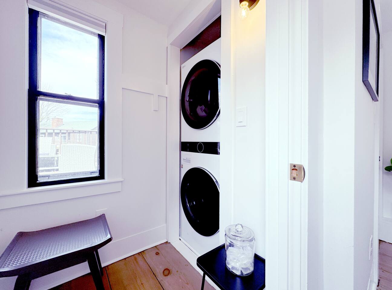 You will have full access to the condo — two floors of living space and an outdoor patio area via a keypad lock.