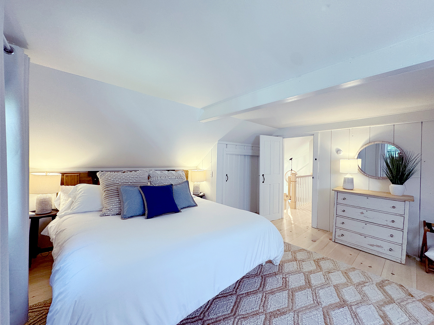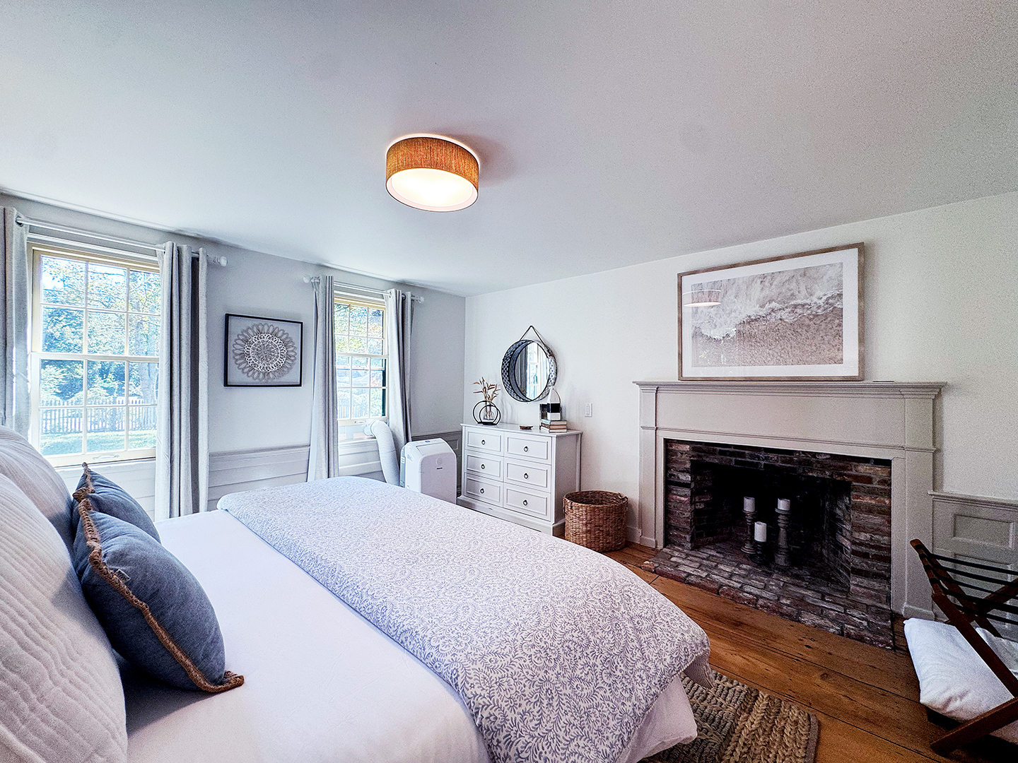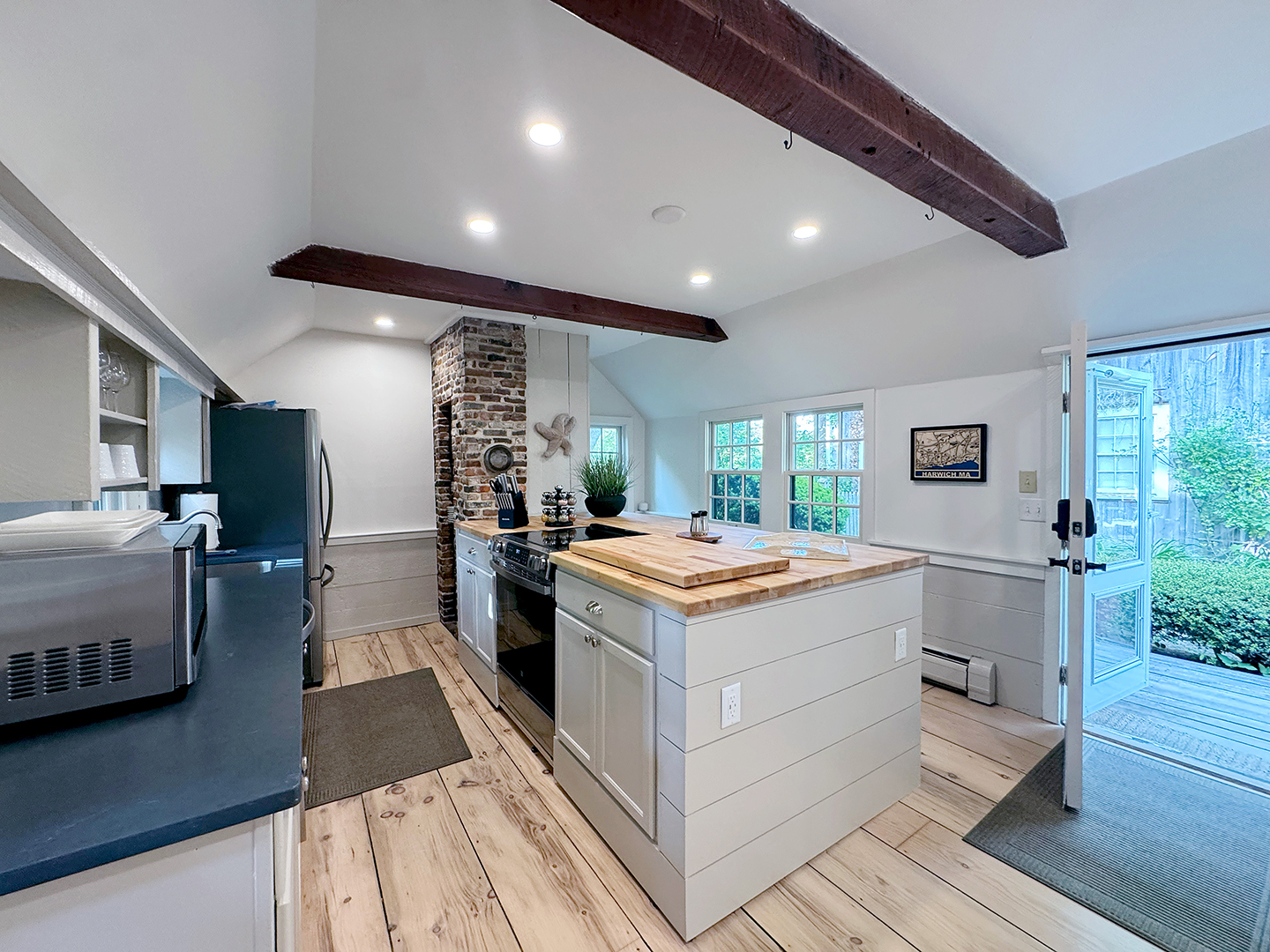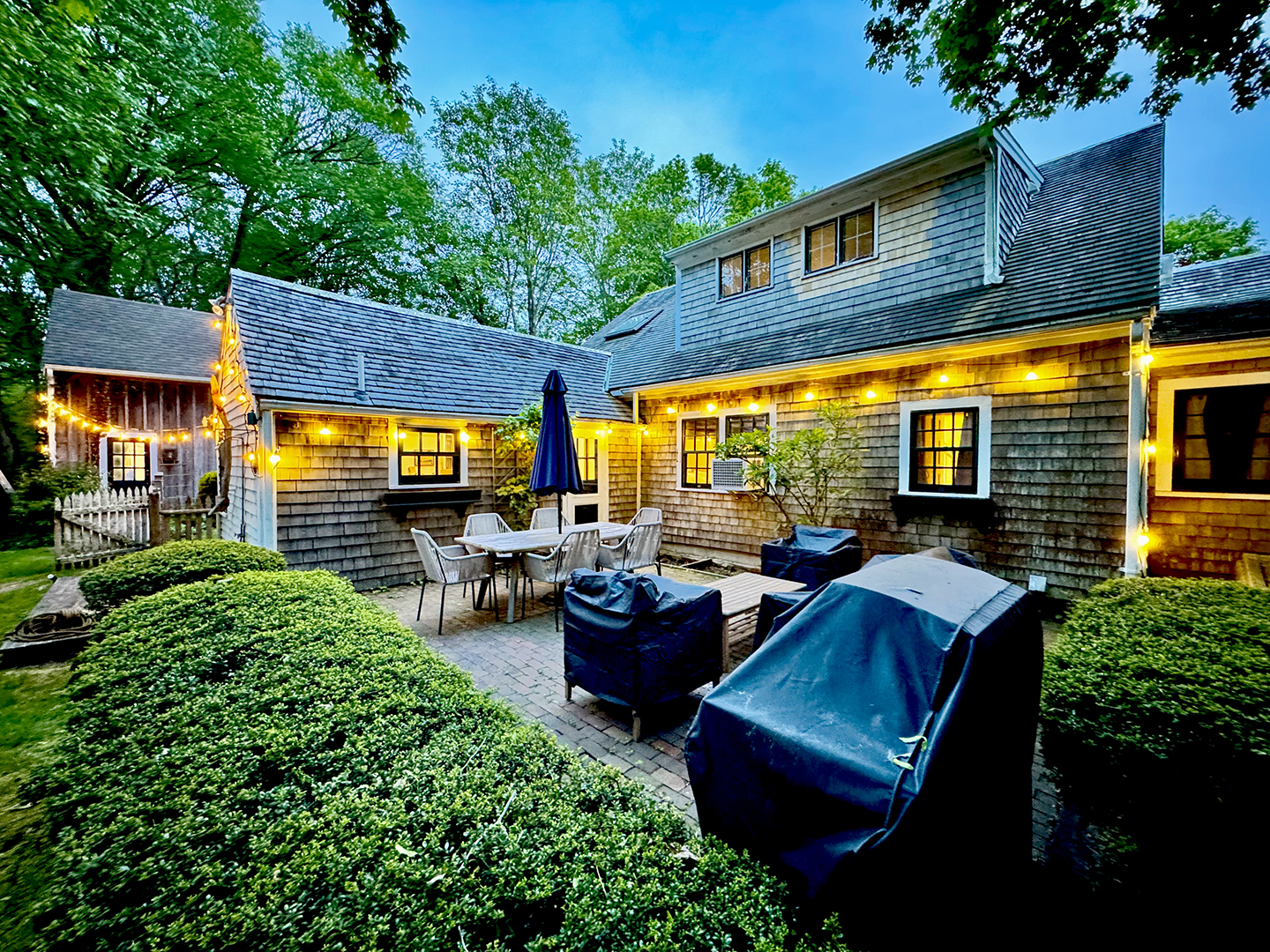 The Saltwind Cottage was transported from Nantucket to its current location, bringing with it timeless character & history. Two king bedrooms on the first floor with one full & one half bath. Two bedrooms (one king and one twin) on the second floor with a large fully renovated full bath. Original King Pine floors span the entire first floor, adding warmth & authenticity. Set on 0.7 acres; borders conservation land — shaded backyard. 43-inch Roku TV, Pack 'n Play, high chair, beach chairs, games.