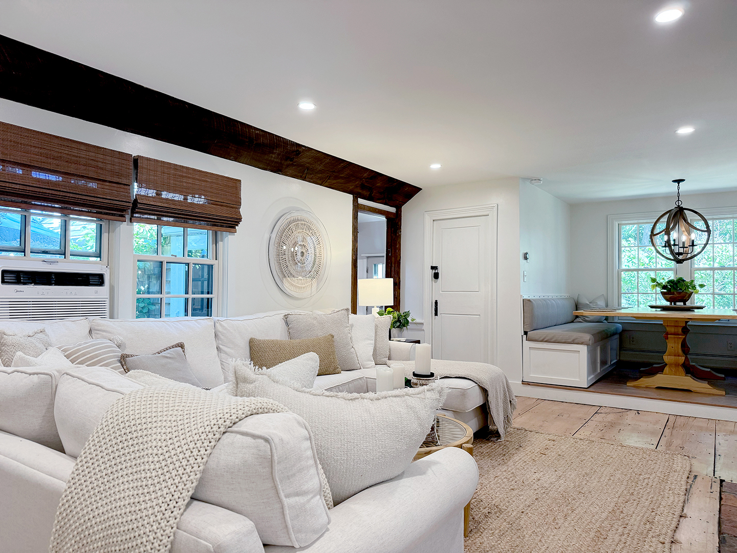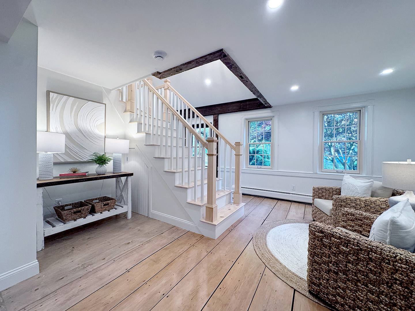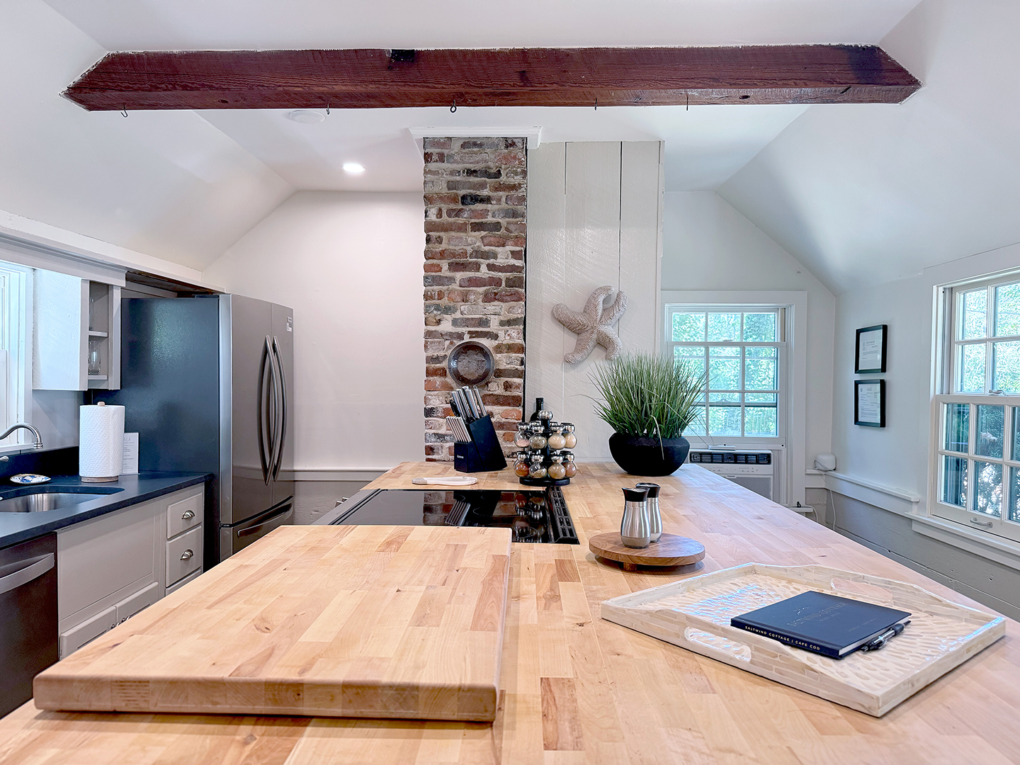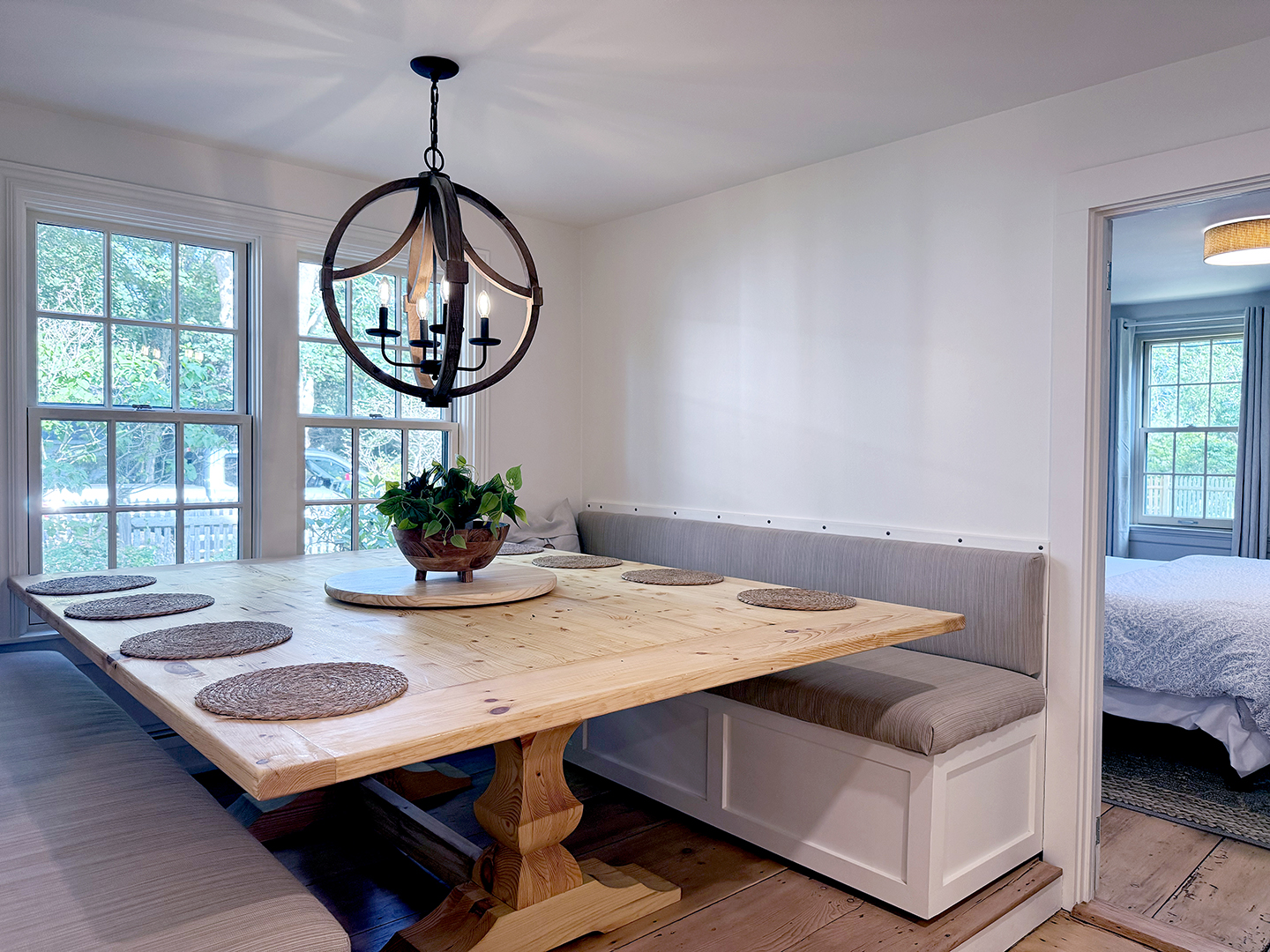 The Saltwind Cottage was transported from Nantucket to its current location, bringing with it timeless character & history. Two king bedrooms on the first floor with one full & one half bath. Two bedrooms (one king and one twin) on the second floor with a large fully renovated full bath. Original King Pine floors span the entire first floor, adding warmth & authenticity. Set on 0.7 acres; borders conservation land — shaded backyard. 43-inch Roku TV, Pack 'n Play, high chair, beach chairs, games.