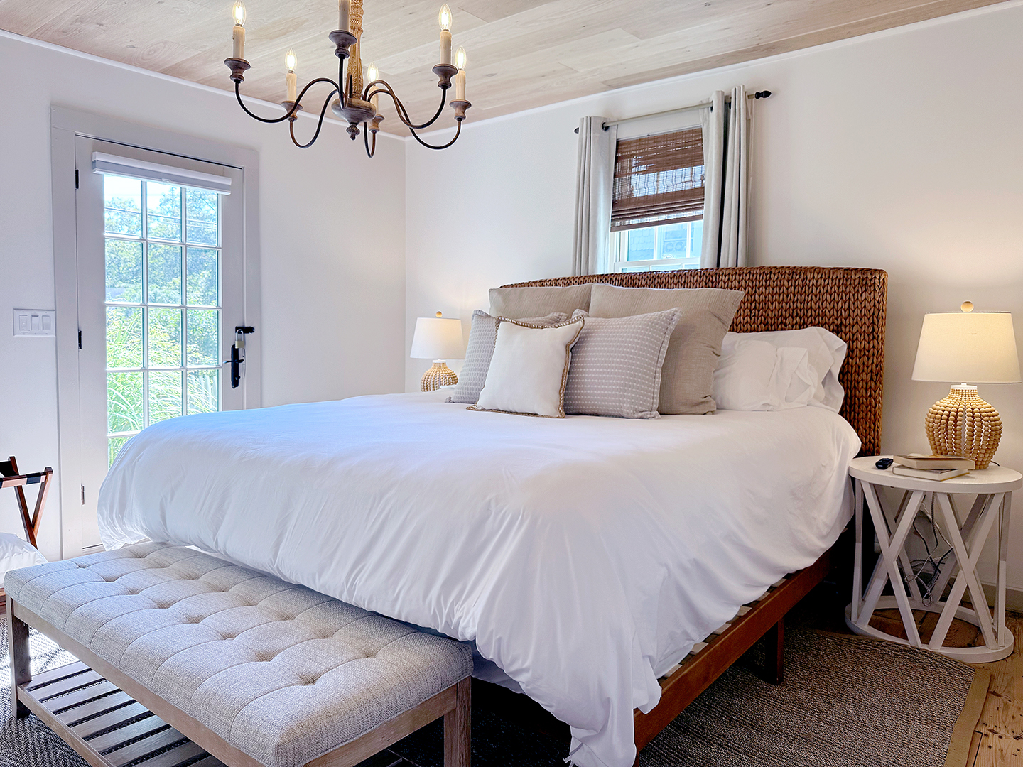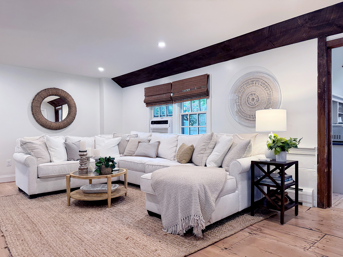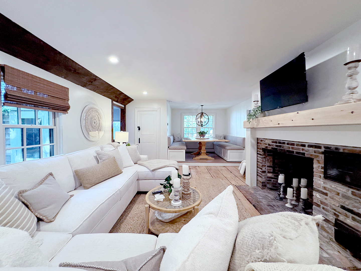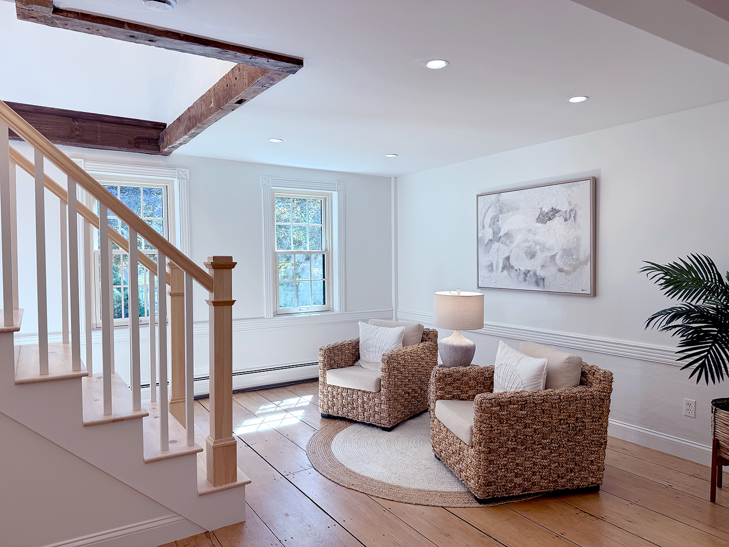 The Saltwind Cottage was transported from Nantucket to its current location, bringing with it timeless character & history. Two king bedrooms on the first floor with one full & one half bath. Two bedrooms (one king and one twin) on the second floor with a large fully renovated full bath. Original King Pine floors span the entire first floor, adding warmth & authenticity. Set on 0.7 acres; borders conservation land — shaded backyard. 43-inch Roku TV, Pack 'n Play, high chair, beach chairs, games.