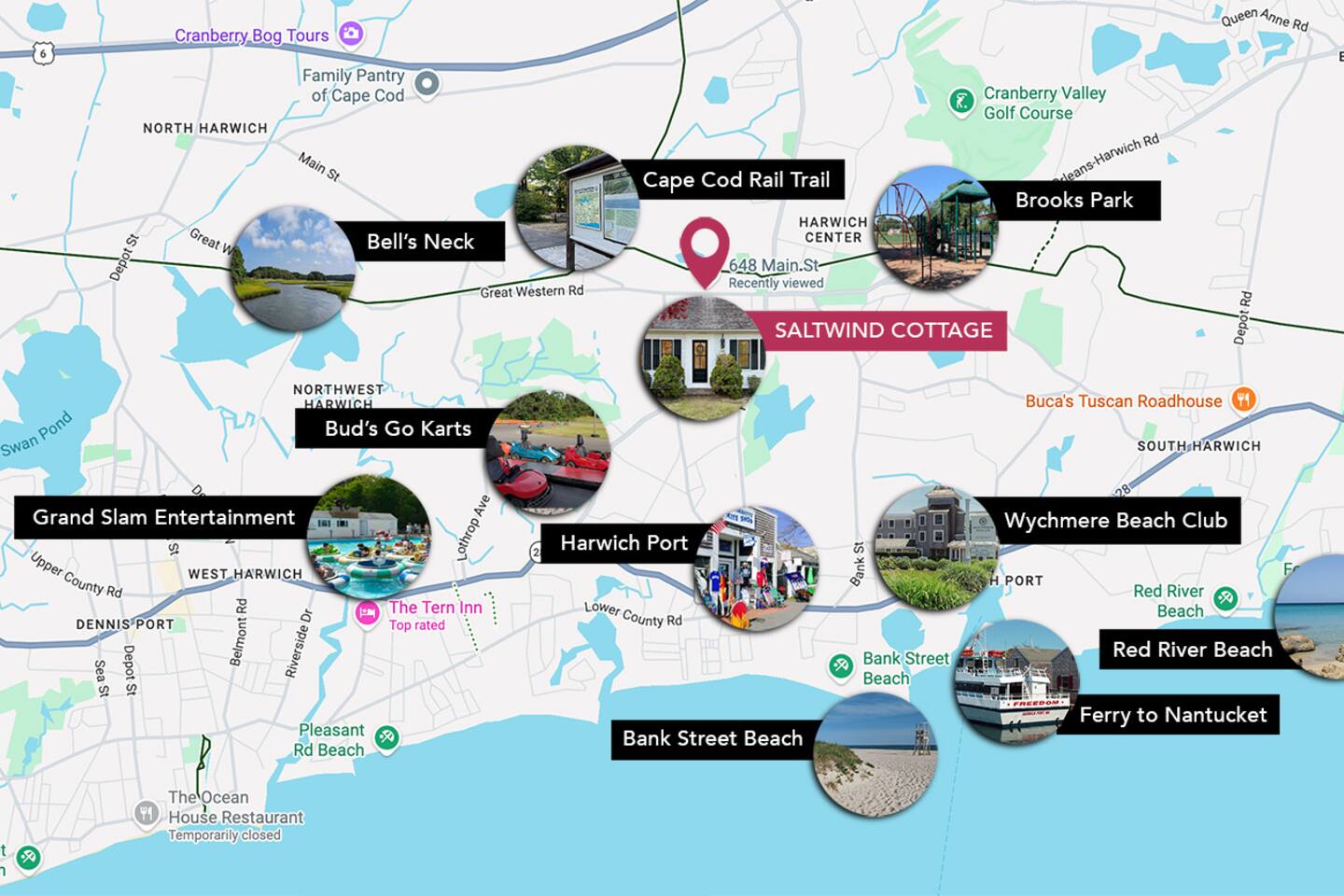 BEDROOMS: Sleeping Arrangements (Sleeps 8): King Bedroom - first floor (sleeps 2) - King-sized bed - Large bureau King Bedroom - first floor (sleeps 2) - King-sized bed - Large bureau and closet King Bedroom - second floor (sleeps 2) - King-sized bed - Large bureau and 2 closets Twin Bedroom - second floor (sleeps 2) - 2 Twin-sized beds - Closet HIGHLIGHTS: • Wide Pine Floors Throughout • Large 8-Foot Island in Kitchen • Large Fully-renovated Upstairs Bathroom • Clawfoot Tub in the 2nd Floor Bathroom • Wood Ceiling in Primary Bedroom • 3 King and 2 Twin Beds • Banquet Dining Area that Seats 8 People • Fully Fenced-in Yard • Fire Pit and Adirondack Chairs • 2.5 Bathrooms • Cape Cod Rail Trail Runs Behind the Home • 4-5 Car Parking in the Driveway • 1/4 mile from Harwich Center • 2 miles from Wychmere Beach Club • 2 miles from Harwich Port • 2 miles from Local Beaches • 2 miles from Freedom Cruise Line Ferry to Nantucket BATHROOMS: • Large Fully Renovated Full Bath (2nd Floor) - soaker tub and separate stand up shower • Full Bath (1st Floor) - stand up shower • Half Bath (1st Floor) KITCHEN: • Soapstone counters • Large butcher block island • Stainless Steel Appliances • Microwave • Keurig Coffeemaker/Coffee Pods • Drip Coffeemaker • Electric Tea Kettle • Electric Cooktop • June Oven • Dishwasher • Cutlery • Cookware • Silverware • Wine Glasses • Coffee Mugs • Glassware • Dinnerware • Paper Towels • Dish Soap • Hand Soap • Sponge • Trash Bags • Dishwasher Tabs OUTDOORS: • Outdoor Dining Set with Umbrella - Seats 6 • Outdoor Lounging Area - Seats 5 • Fire Pit Area - Seats 6 • Gas Grill GENERAL: • Bath, Hand and Face Towels • Shampoo and Conditioner • Body Wash • Sheets • Pillows • Duvet Covers • Fleece Blankets • 8 Beach Chairs • 8 Beach Towels NEARBY ATTRACTIONS Walkable From Our Home: - Brooks Park - Cape Cod Lavendar Farm - Cape Cod Rail Trail - Ruggie's Restaurant - The Seal Pub and Cafe Within Minutes from Our Home by Car: - Thompson's Dog Park - Bank Street Beach - Red River Beach - Harwich Antiques Center - Bell's Neck Conservation Lands - Wychmere Beach Club - Bud's Go Karts - Grand Slam Entertainment, Cape Cod Baseball & Bumper Boats RECOMMENDED RESTAURANTS IN HARWICH - Mooncussers Tavern Inn & Restaurant - Brax Landing Waterfront Seafood Restaurant - Jake Rooney's Restaurant - The Lanyard Restaurant - Weatherdeck Restaurant - Cape Sea Grille - The Port Restaurant Walk around the corner from the house and stroll the Cape Cod Rail Trail and just a bit further away is the Cape Cod Lavender Farm (also walkable from the home).